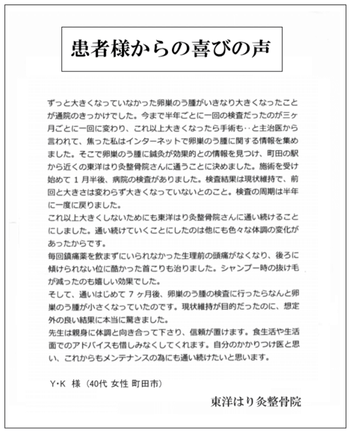 今回は他の線維筋痛症のお客様が心療内科などに行かされることが可哀そうで、「私は東洋医学で良くなったから話したいです」と言っていただきお話を伺いました。